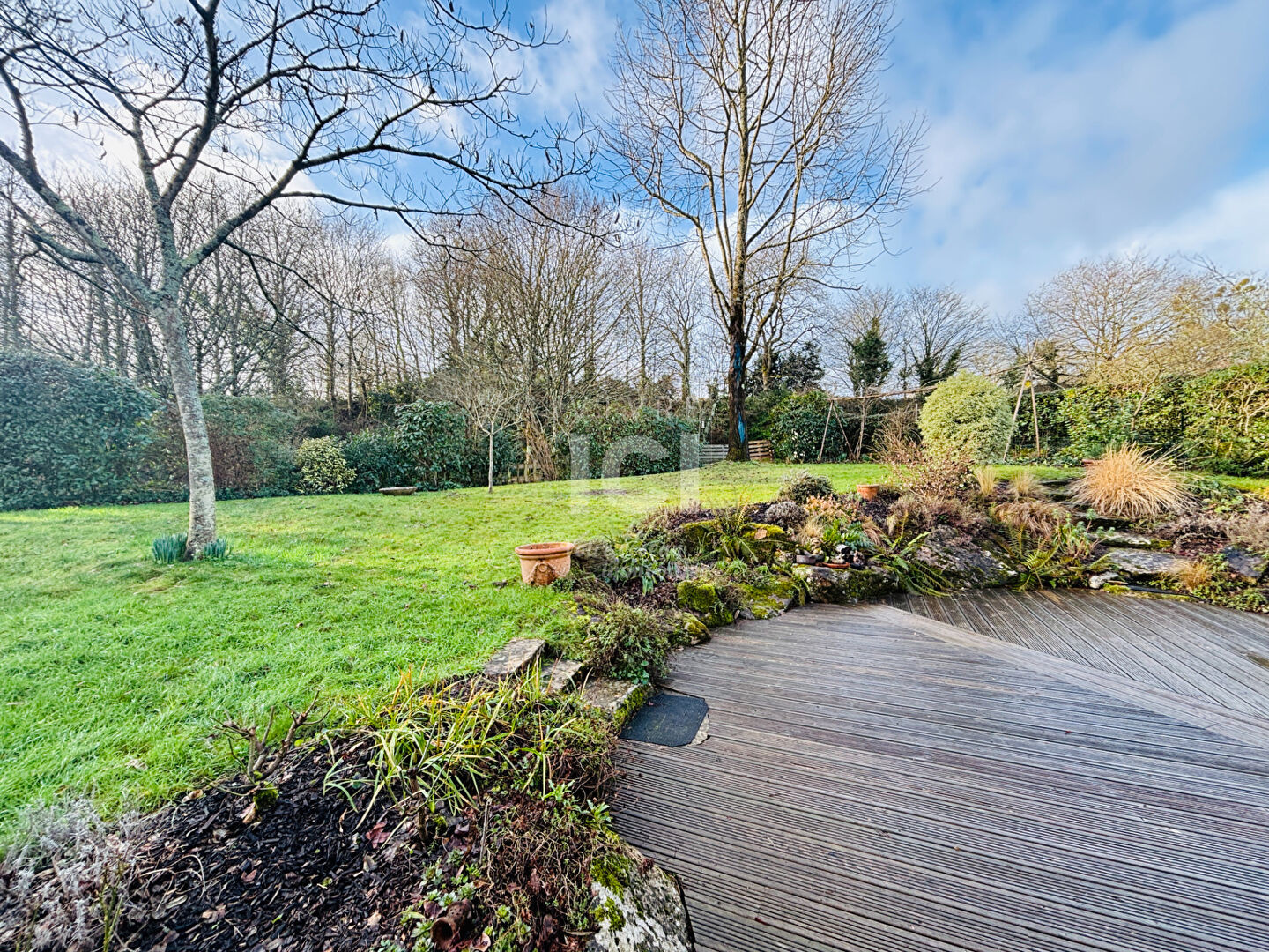 Vous profiterez également d'un double garage, d'un grenier, d'une cave et d'un jardin paysagé et arboré d'environ 800 m².