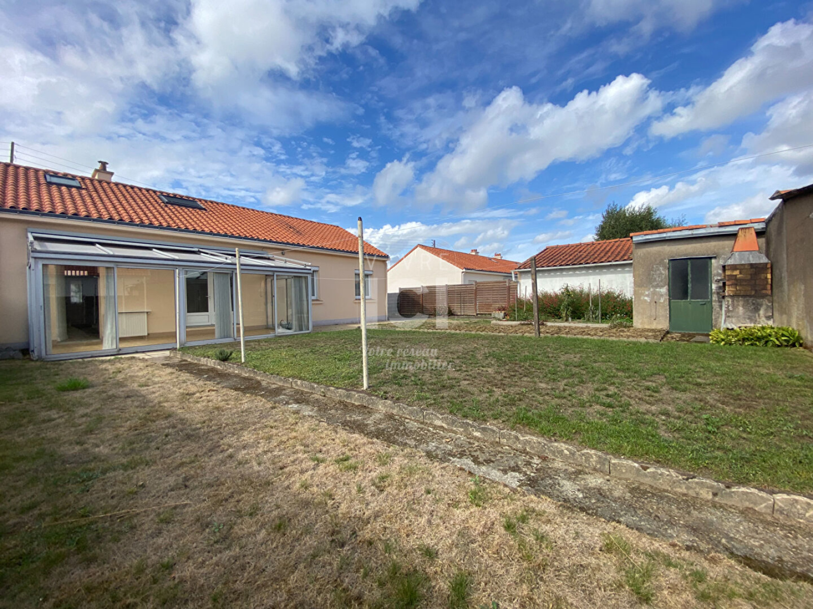 Elle comprend un hall d'entrée desservant un salon séjour donnant sur une véranda chauffée de 17 m², une cuisine aménagée ainsi qu'une arrière-cuisine pratique et spacieuse.