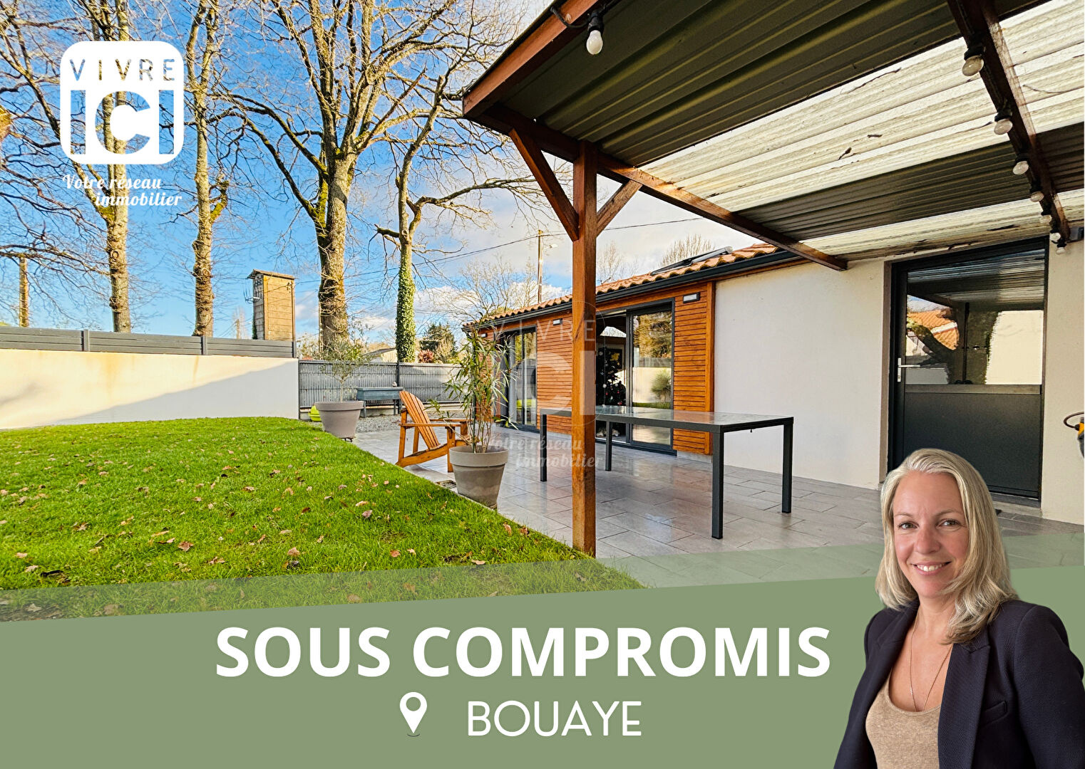 Maison de plain-pied ? 3 chambres + bureau à Bouaye Idéalement située à environ 1 km des commerces et à proximité des écoles et transports, venez découvrir cette agréable maison de plain-pied d'environ 113 m². Elle se compose d'une entrée avec placard, un bureau et 1 WC, d'une belle pièce de vie généreuse et lumineuse avec cheminée insert, d'une cuisine indépendante et son arrière cuisine. Coté nuit 3 chambres dont 2 avec placard et 1 avec un espace salle d'eau en attente, d'une salle de bains et d'1 WC indépendant. Un garage fermé et un jardin viennent compléter l'ensemble. Le tout sur une parcelle de 749 m², idéale pour profiter des beaux jours en toute tranquillité. Une maison fonctionnelle et bien placée, parfaite pour une famille. À visiter sans tarder ! Pour Visiter, contactez Alicia RAMARD, Agence VIVRE ICI IMMOBILIER BOUAYE (4.44 % d'honoraires TTC à la charge de l'acquéreur.) Les informations sur les risques auxquels ce bien est exposé sont disponibles sur le site Géorisques